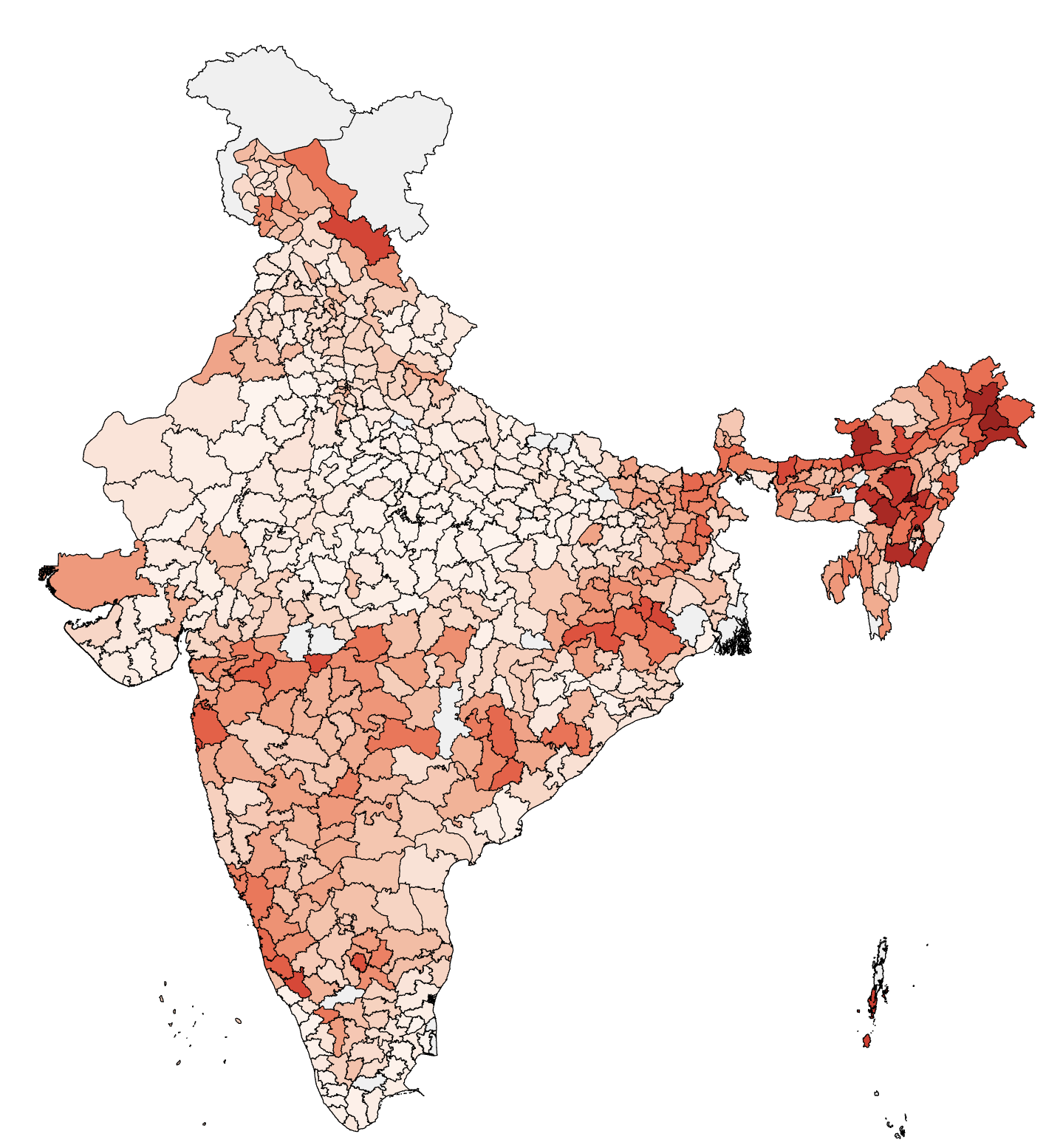 The genetic unit is the endogamous group (jati/tribe), not the district. Two jatis in the same district can be as genetically different as Europeans and East Asians. Districts remain the logistic unit (where to set up collection centres), but allocation is driven by the number of distinct endogamous groups reachable from each district.